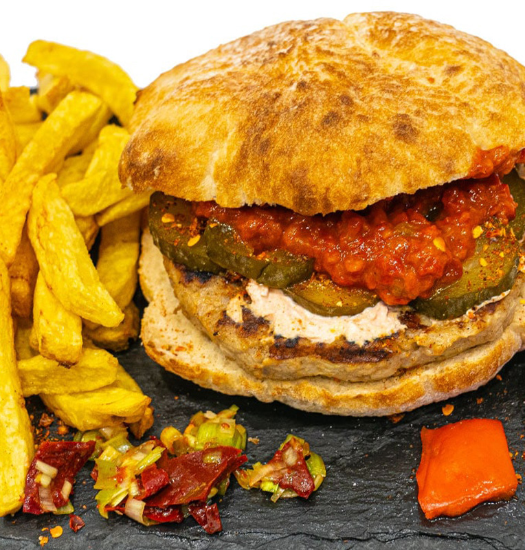 - Pleskavița Sârbă (160g) - amestec de carne tocată (vită și porc), condimente tradiționale sârbești, ceapă, usturoi, sare