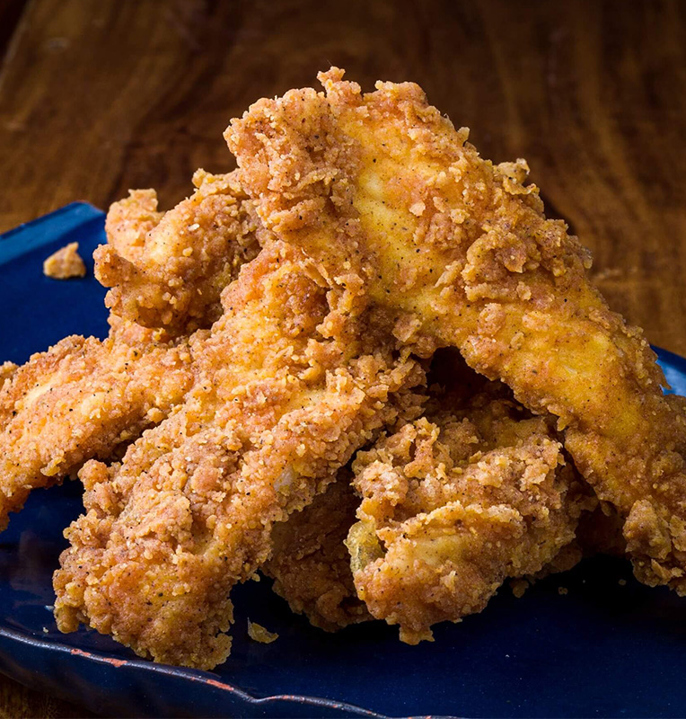 - Stripsuri de pui (160g) - bucăți de piept de pui tăiate în fâșii, condimente pentru pui, făină sau pesmet pentru crustă, sare